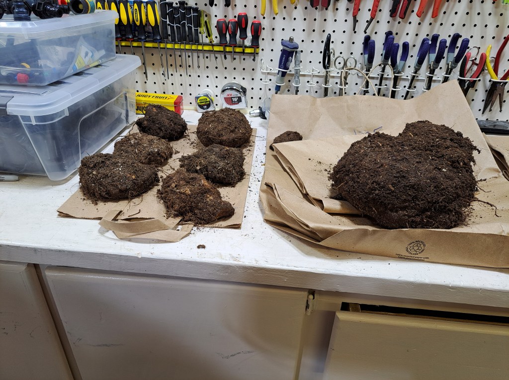 This time of year, there are a lot of mushrooms growing in the yard. I patrol for puffer mushrooms because if they release their spores, you will have them everywhere. I have one part of the yard prone to growing these. They smell delicious, but I’ve never been brave enough to try eating one. You’d have to meticulously clean out the spores first. That doesn’t look particularly appetizing.
